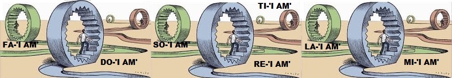 Man's seeking for the Absolute yonder departs from his 'i am' and journey away in 'conscious labor and intentional suffering' along an elliptical path closer and closer to his real 'I AM'.  His ‘I’s attach and identify on the way to the final 'I AM' if this could ever happen for him as a hethormen human being at the MI-FA Interval proper to his position in the (our) Ray of Creation.  Upon achieving his own real 'I AM' he is now ready to burst asunder his limited 'I AM', be accepted by the Above, enters and becomes one among all Cosmic 'I AM's at the TI-DO Interval of this same Ray of Creation.